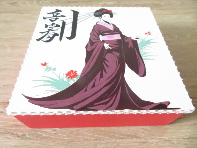 Grande boite en bois peint à la main, décoration Geisha