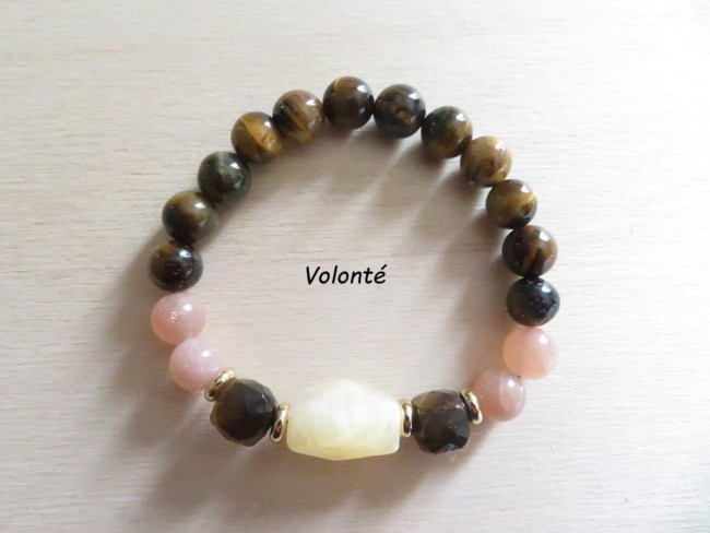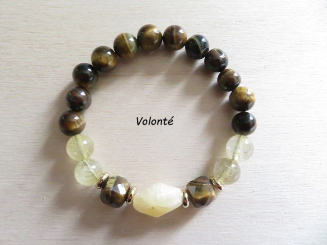 Bracelet Volonté - Œil de tigre, Quartz rutile, Calcite jaune