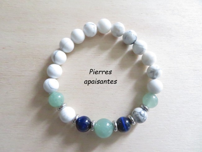 Bracelet Pierres apaisantes - Howlite, Aventurine, Œil de tigre bleu