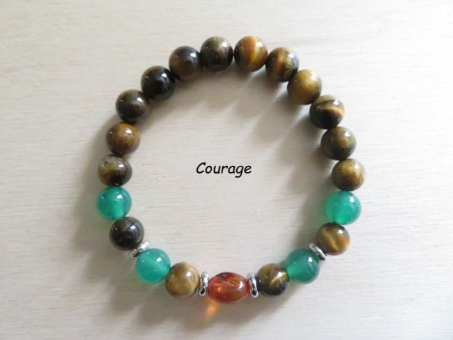 Bracelet Courage - Œil de tigre, Agate verte, Ambre de la baltique