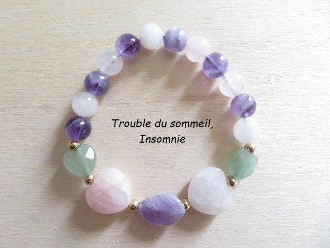 Bracelet Trouble du sommeil, Insomnie - Améthyste, Quartz rose, Aventurine verte